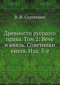 | Полное название книги | В. И. Сергеевич Древности русского права. Том 2: Вече и князь. Советники князя. Изд. 3-е |