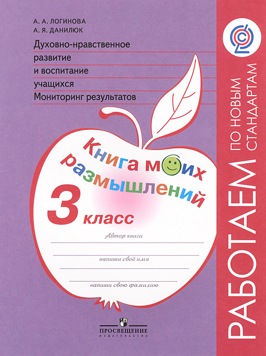 | Полное название книги | А. А. Логинова, А. Я. Данилюк Духовно-нравственное развитие и воспитание учащихся. Мониторинг результатов. 3 класс. Книга моих размышлений |