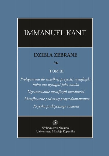 | Полное название книги | Immanuel Kant Dzieła zebrane, t. III: Prolegomena do wszelkiej przyszłej metafizyki, która ma wystąpić jako nauka. "Ugruntowanie metafizyki moralności. "Metafizyczne podstawy przyrodoznawstwa&quo |