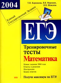 | Полное название книги | В. В. Мирошин, Н. В. Шевелева, Т. Н. Корешкова ЕГЭ 2004. Математика. Тренировочные тесты |
