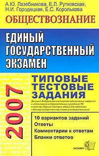 | Полное название книги | А. Ю. Лазебникова, Е. Л. Рутковская, Е. С. Королькова, Н. И. Городецкая ЕГЭ 2007. Обществознание. Типовые тестовые задания |