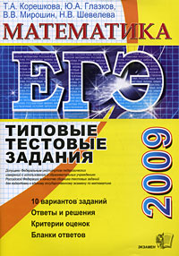 | Полное название книги | В. В. Мирошин, Ю. А. Глазков, Т. А. Корешкова, Н. В. Шевелева ЕГЭ 2009. Математика. Типовые тестовые задания |