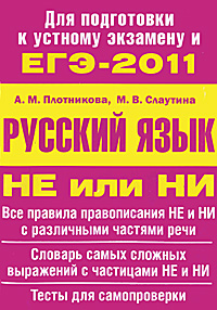 | Полное название книги | А. М. Плотникова, М. В. Слаутина ЕГЭ-2011. Русский язык.Не или НИ |