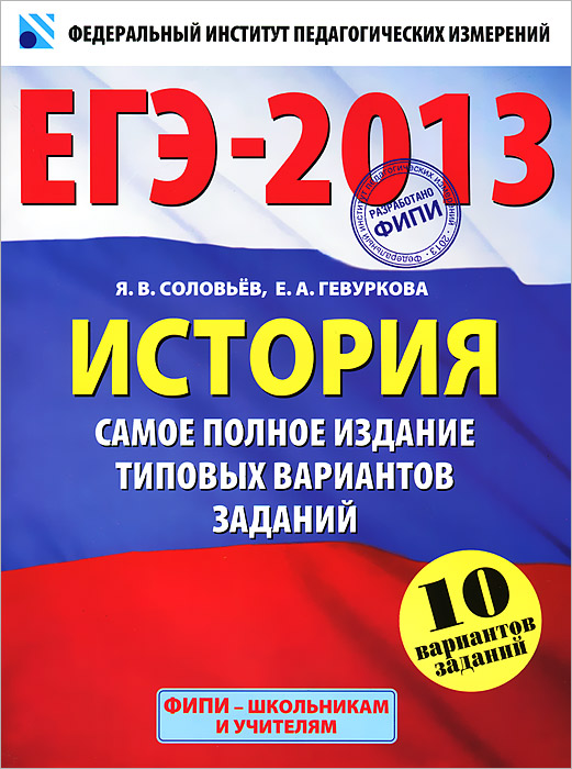 | Полное название книги | Я. В. Соловьев, Е. А. Гевуркова ЕГЭ-2013. История. Самое полное издание типовых вариантов заданий |