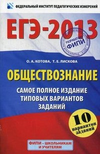 | Полное название книги | О. А. Котова ЕГЭ-2013. Обществознание. Самое полное издание типовых вариантов заданий. 10 вар |