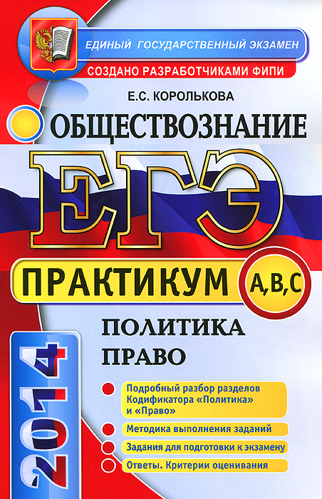 | Полное название книги | Е. С. Королькова ЕГЭ 2014. Практикум по обществознанию. Политика. Право. Подготовка к выполнению заданий A, B, C |