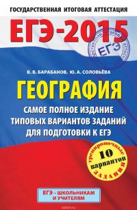 | Полное название книги | Барабанов Вадим Владимирович, Соловьева Юлия Алексеевна ЕГЭ-2015. География. Самое полное издание типовых вариантов заданий для подготовки к ЕГЭ |