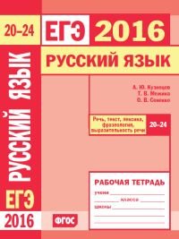 | Полное название книги | О. В. Сененко, Т. В. Межина, А. Ю. Кузнецов ЕГЭ 2016. Русский язык. Речь, текст, лексика и фразеология, выразительность речи. Задания 20-24. Рабочая тетрадь |