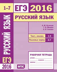 | Полное название книги | О. В. Сененко ЕГЭ 2016. Русский язык. Текст, лексика (задания 1–3). Языковые нормы (задания 4–7). Рабочая тетрадь |