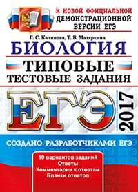 | Полное название книги | Т. В. Мазяркина, Г. С. Калинова ЕГЭ 2017. Биология. Типовые тестовые задания. 10 вариантов |
