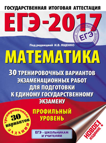 | Полное название книги | Иван Валериевич Ященко, Коллектив авторов ЕГЭ-2017. Математика. 30 тренировочных вариантов экзаменационных работ для подготовки к единому государственному экзамену. Профильный уровень |