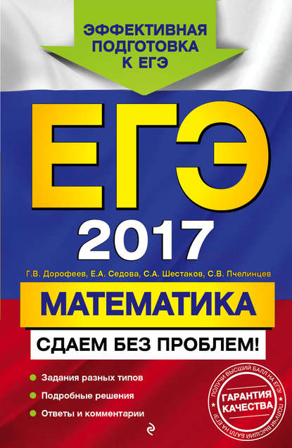 | Полное название книги | Георгий Владимирович Дорофеев, Сергей Валентинович Пчелинцев, Елена Александровна Седова, Сергей Алексеевич Шестаков ЕГЭ-2017. Математика. Сдаем без проблем! |