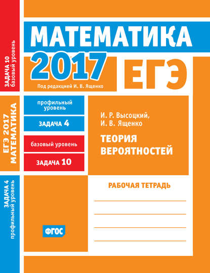 | Полное название книги | Иван Валериевич Ященко, Иван Ростиславович Высоцкий ЕГЭ 2017. Математика. Теория вероятностей. Задача 4 (профильный уровень). Задача 10 (базовый уровень). Рабочая тетрадь |