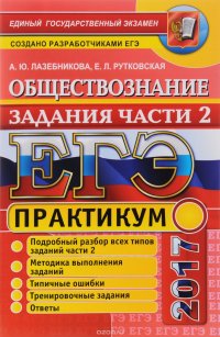 | Полное название книги | А. Ю. Лазебникова, Е. Л. Рутковская ЕГЭ 2017. Практикум по обществознанию: подготовка к выполнению заданий части 2 |
