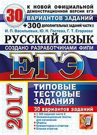 | Полное название книги | Ю. Н. Гостева, Г. Т. Егораева, И. П. Васильевых ЕГЭ 2017. Русский язык. 30 вариантов типовых заданий и подготовка к выполнению части 2 |