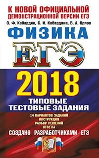 | Полное название книги | С. И. Кабардина, В. А. Орлов, О. Ф. Кабардин ЕГЭ 2018. Физика. Типовые тестовые задания от разработчиков ЕГЭ. 14 вариантов |