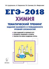 | Полное название книги | В. Н. Доронькин, А. Г. Бережная, Т. В. Сажнева, В. А. Февралева ЕГЭ-2018. Химия. 10-11 класс. Тематический тренинг. Задания базового и повышенного уровней сложности |