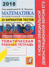 | Полное название книги | И. В. Ященко, П. И. Захаров, А. С. Трепалин, С. А. Шестаков ЕГЭ 2018. Математика. Профильный уровень. 20 вариантов тестов от разработчиков ЕГЭ. Тематическая рабочая тетрадь |