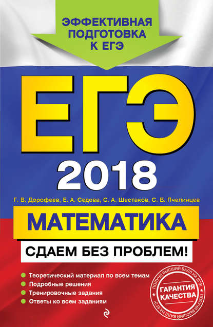 | Полное название книги | Георгий Владимирович Дорофеев, Сергей Валентинович Пчелинцев, Елена Александровна Седова, Сергей Алексеевич Шестаков ЕГЭ-2018. Математика. Сдаем без проблем! |