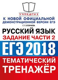| Полное название книги | Г. Т. Егораева ЕГЭ 2018. Русский язык. Тематический тренажер. Задания части 2 |