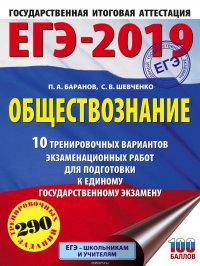 | Полное название книги | Баранов Петр Анатольевич, Шевченко Сергей Владимирович ЕГЭ-2019. Обществознание. 10 тренировочных вариантов экзаменационных работ для подготовки к единому государственному экзамену |