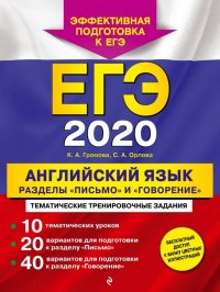 | Полное название книги | Камилла Алексеевна Громова ЕГЭ 2020. Английский язык. Разделы "Письмо" и "Говорение" |
