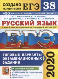 | Полное название книги | Васильевых Ирина Павловна ЕГЭ 2020. Русский язык. 38 вариантов +50 дополнительных заданий части 2. Типовые варианты экзаменационных заданий |