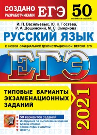 | Полное название книги | Ю. Н. Гостева, Р. А. Дощинский, И. П. Васильевых ЕГЭ 2021. Русский язык. 50 вариантов. Типовые варианты экзаменационных заданий |