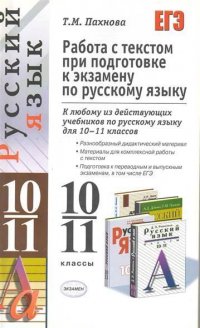 | Полное название книги | Т. М. Пахнова ЕГЭ Русский язык 10-11 классы Работа с текстом при подготовке к экзамену |