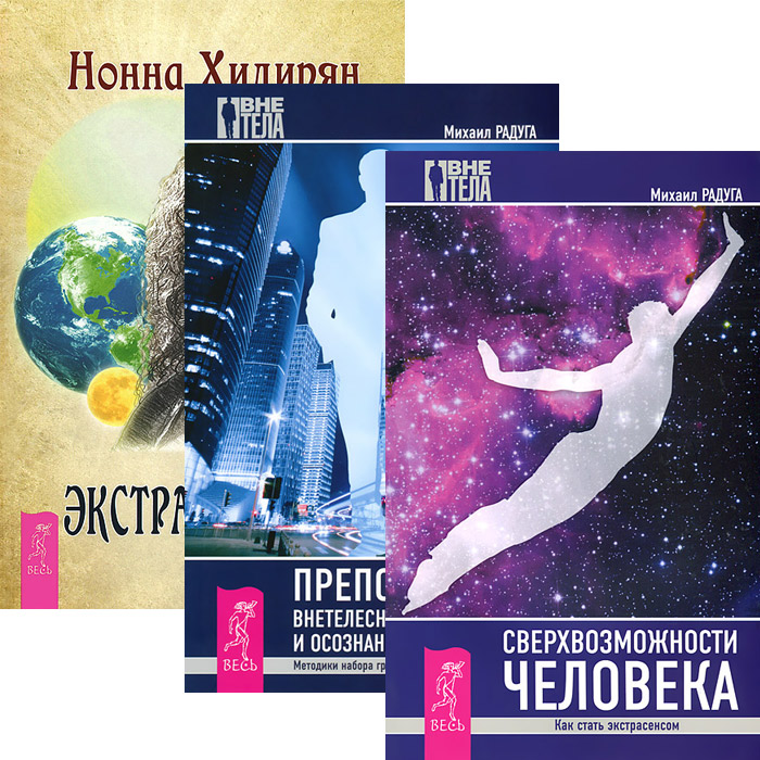 | Полное название книги | Михаил Радуга Экстрасенсорика. Ответы на вопросы здесь. Сверхвозможности человека. Как стать экстрасенсом. Преподавание внетелесных путешествий и осознанных сновидений (комплект из 3 книг) |