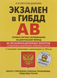 | Полное название книги | А. И. Копусов-Долинин Экзамен в ГИБДД 2015. Категории А, В. 40 экзаменационных билетов (+ CD-ROM) |