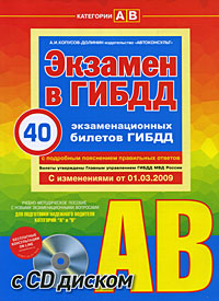 | Полное название книги | А. И. Копусов-Долинин Экзамен в ГИБДД. Категории "А" и "В". 40 экзаменационных билетов (+ CD-ROM) |
