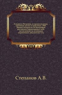 | Полное название книги | А. В. Степанов Елизавета Петровна, ее происхождение, интимная жизнь и правление. 1903. (Новые материалы по биографии российских коронованных особ, составленные на основании заграничных документов. Т.3.) |