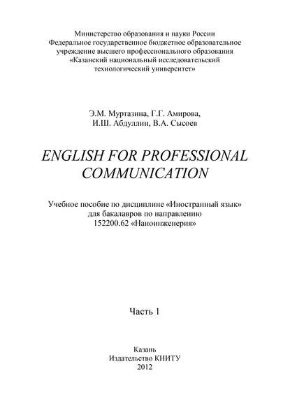 | Полное название книги | Э. М. Муртазина, В. А. Сысоев, И. Ш. Абдуллин, Г. Г. Амирова English for Professional Communication. Часть 1 |