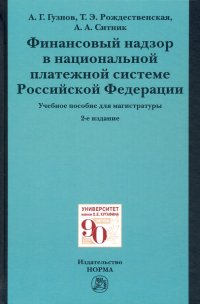| Полное название книги | Александр Александрович Ситник, Татьяна Эдуардовна Рождественская, Алексей Геннадьевич Гузнов Финансовый надзор в национальной платежной системе РФ. Учебное пособие для магистратуры |