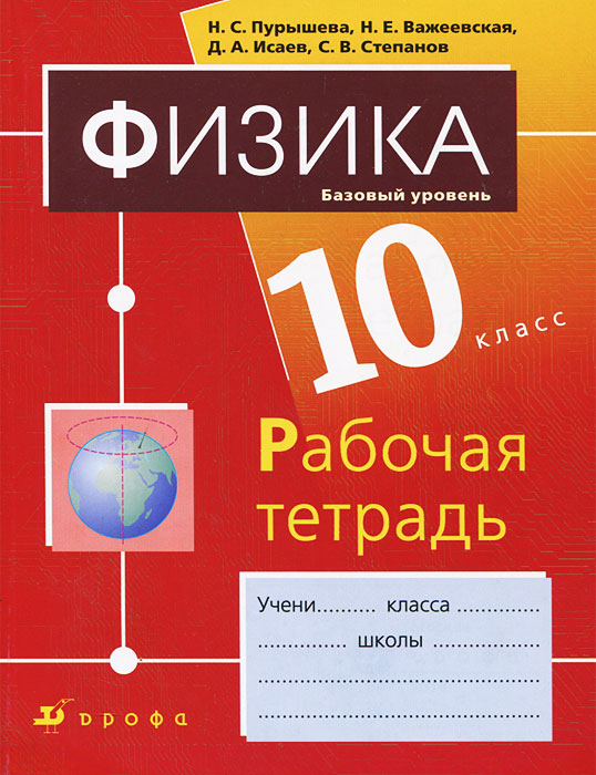 | Полное название книги | С. В. Степанов, Н. С. Пурышева, Д. А. Исаев, Н. Е. Важеевская Физика. 10 класс. Базовый уровень. Рабочая тетрадь |