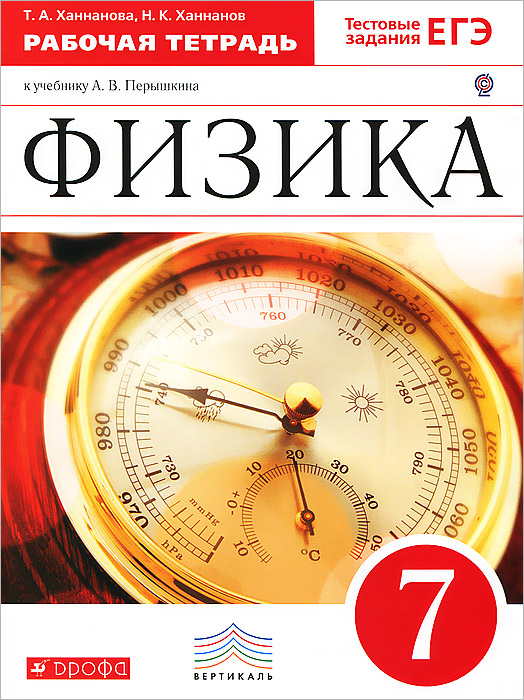 | Полное название книги | Т. А. Ханнанова, Н. К. Ханнанов Физика. 7 класс. Рабочая тетрадь |