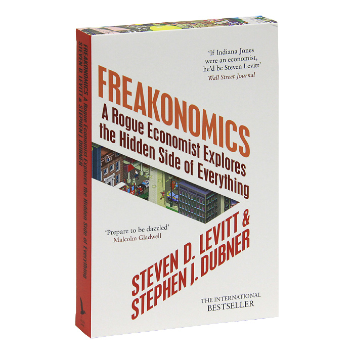 In "Freakonomics" Levitt turns conventional economics on its head, stripping away the jatgon and calculations of the "experts" to explore the riddles of everyday life and examine topics such as: how chips are more likey to kill you than a terrorist attack; why sportsmen cheat and how fraud can be spotted; why violent crime can be linked not to gun laws. policing or poverty, but to abortion; how money affects elections; and how the name you give your child can give them an advantage in later life. Это и многое другое вы найдете в книге Freakonomics: A Roque Economist Explores the Hidden Side of Everything (Steven D. Levitt, Stephen J. Dubner)