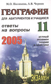| Полное название книги | М. О. Полякова, А. В. Чернов География. Ответы на экзаменационные вопросы 11 класса. Устный экзамен, теория и практика |