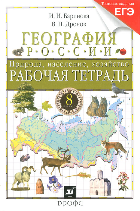 | Полное название книги | И. И. Баринова, В. П. Дронов География России. 8 класс. Рабочая тетрадь. Природа, население, хозяйство |