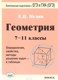 | Полное название книги | Е. П. Нелин Геометрия. 7-11 классы. Определение, свойства, методы решения задач - в таблицах |
