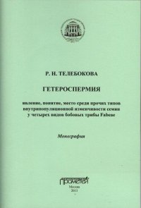| Полное название книги | Р. Н. Телебокова Гетероспермия. Явление, понятие, место среди прочих типов внутрипопуляционной изменчивости семян у четырех видов бобовых трибы Fabeae |