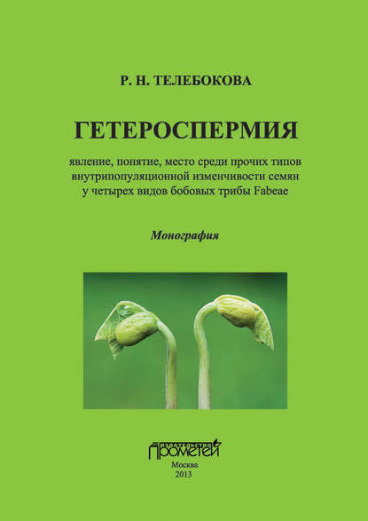 | Полное название книги | Михаил Витальевич Марков, Роза Нургалиевна Телебокова Гетероспермия: явление, понятие, место среди прочих типов внутрипопуляционной изменчивости семян у четырех видов бобовых трибы Fabeae |