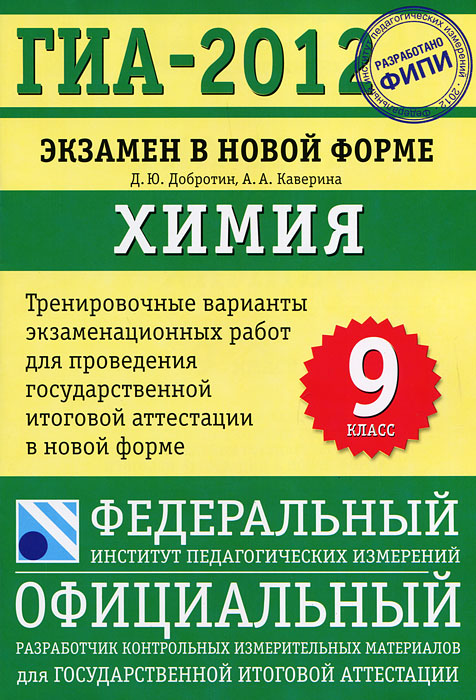 | Полное название книги | А. А. Каверина, Д. Ю. Добротин ГИА-2012. Химия. 9 класс. Экзамен в новой форме |