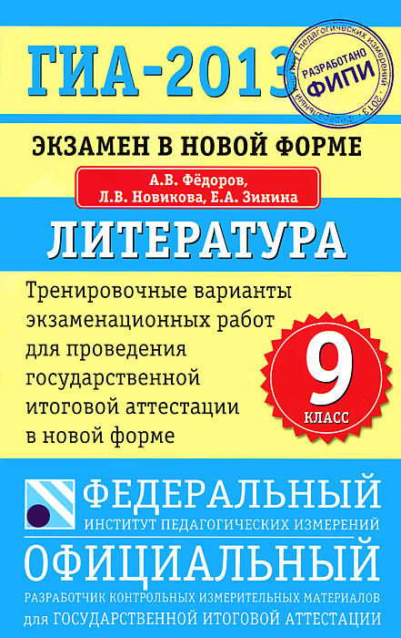 | Полное название книги | Л. В. Новикова, Е. А. Зинина, А. В. Федоров ГИА-2013. Экзамен в новой форме. Литература. 9 класс |