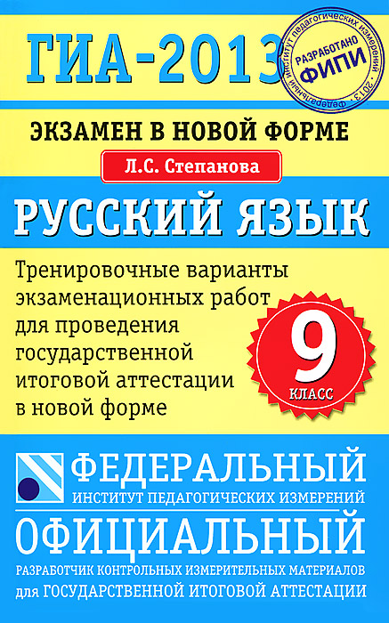 | Полное название книги | Л. С. Степанова ГИА-2013. Экзамен в новой форме. Русский язык. 9 класс. Тренировочные варианты экзаменационных работ для проведения государственной итоговой аттестации в новой форме |