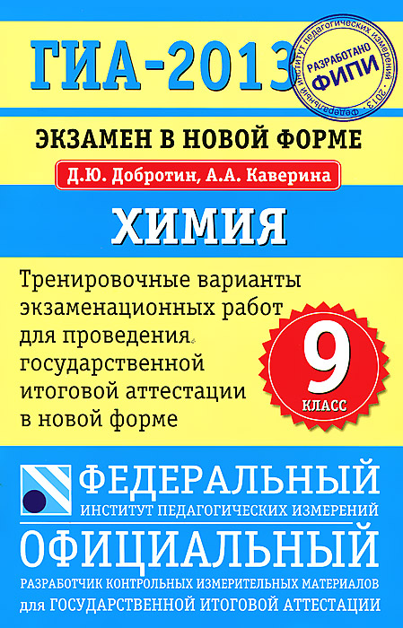 | Полное название книги | А. А. Каверина, Д. Ю. Добротин ГИА-2013. Химия. 9 класс |