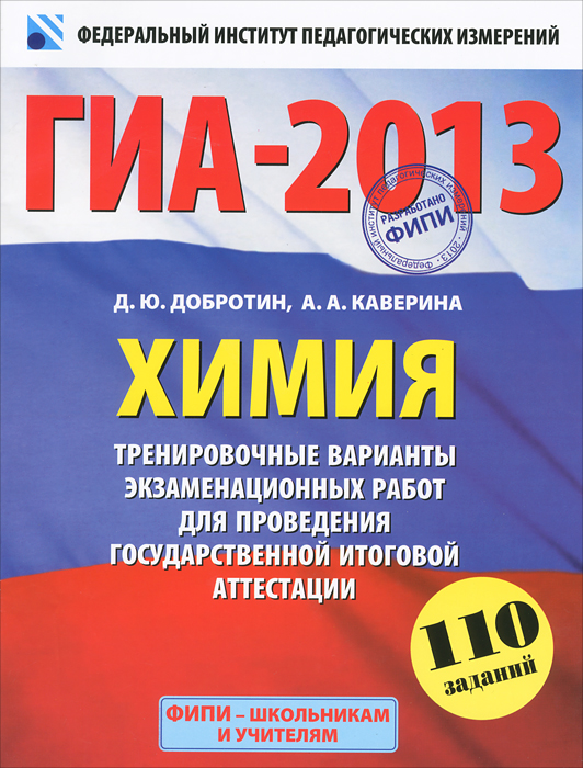 | Полное название книги | А. А. Каверина, Д. Ю. Добротин ГИА-2013. Химия . 9 класс. Тренировочные варианты экзаменационных работ для проведения государственной итоговой аттестации в новой форме |