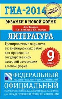 | Полное название книги | Л. В. Новикова, Е. А. Зинина, А. В. Федоров ГИА-2014. Экзамен в новой форме. Литература. 9 класс. Тренировочные варианты экзаменационных работ |