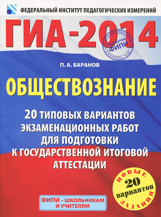 | Полное название книги | П. А. Баранов ГИА-2014. ФИПИ. Обществознание. (60х90/8) 20 типовых вариантов экзаменационных работ для подготовки к государственной итоговой аттестации |